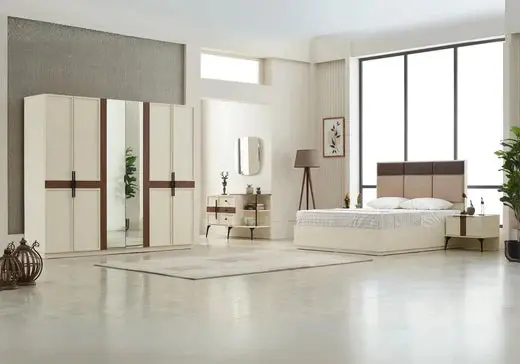 With its minimalist design and soothing cream tones, this bedroom set brings a touch of serenity and elegance to your space. Ideal for lovers of refined simplicity.