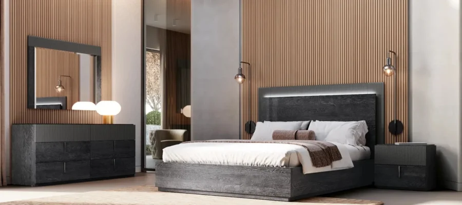 For a more classic vibe, opt for the Bedroom Complete Padded OR Ivory Konè. This model, with its gold and ivory finishes, embodies luxury and refinement.