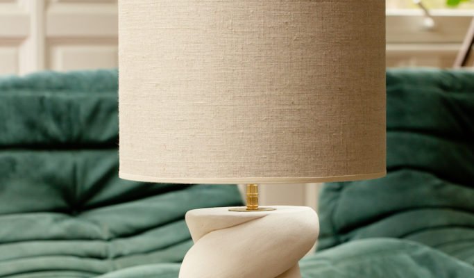 Between Aurélie Fretti and for me it’s a story of dogs and babka. No connection, one might say, except a real crush on this ceramist and sculptor who goes by the name of Di Fretto, as funny as she is talented, a former Parisian pubard who fled to the heart of the Lubéron a year ago with her three dogs, her man and her children. A place in his image, pure, simple and aesthetic that I hope to show you one day, a real playground where he gives free rein to his creativity. Of Italian origin on her father’s side and Polish on her mother’s side, Aurélie draws on these two cultures which she infuses into her work. On the one hand, a tribute to the bodies of antiquity, to the statues that he brings to life and that he deviates in his own way in reference to Italy with busts, upside-down heads transformed into lamps or vases, which invite the vocabulary of this era to play with current codes. On the other, a dive into childhood with Babka, one of his flagship pieces which he brought to life in homage to the famous Polish brioches of the same name. Superb pieces that we find in particular on this graceful table lamp, modeled in a white chamotte earth that takes the form of a twist with an irregular rendering that also evokes the vortices of life. But Babka also has ceramic or even wooden appliques that he cuts with a chainsaw and sculpts, wall sculptures or even molds that he transforms into appliques. Plot twists found in the oversized handles of his brightly colored enamel cups, which he also transformed into vases. From the cup to the wall fresco, Aurélie does not impose limits on herself and follows her desires, which she gives shape using different techniques that she learns during her creations. It is for all these reasons that I really wanted to present to you the poetic and inspired universe of this artist who is not afraid of anything, who exudes strength and fragility and who has the delicacy to shape pieces as beautiful as they are useful. My Babka lamp arrived in our living room a week ago; I look at it differently every day, I twisted, in agreement with Aurélie, its lampshade by twisting it with wool threads which add a material and softness that I like but the original one is in linen. Through several photos I will let you discover the world of Aurélie, her creations and of course her dogs, a topic of conversation that binds us now like this beautiful lamp, which spreads its grace and its light in our interior.