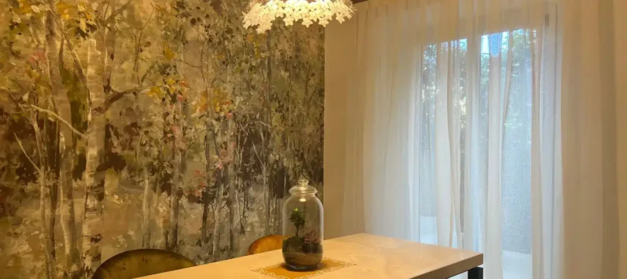 One of Zefiro Interiors’ most recent projects highlights the transformative capacity of Designers Guild products. In a dining area, straw wallpaper was installed which represents an enchanted forest. This element not only added depth and texture to the environment, but also created an evocative and enveloping atmosphere that recalls the beauty of nature.